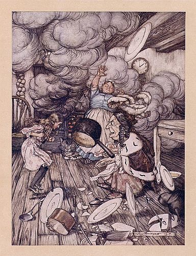 Alice said nothing; she had sat down with her face in her hands, wondering if anything would ever happen in a natural way again.